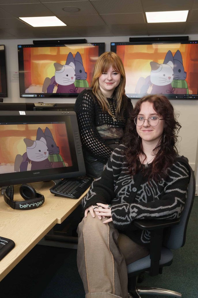 Ella MacDougall and Jenni Romeril, who are studying Animation and Games Art, have boosted their portfolios and gained invaluable experience in the industry by creating the perfect festive video for Newcastle twins Hannah and Grace Stobart.